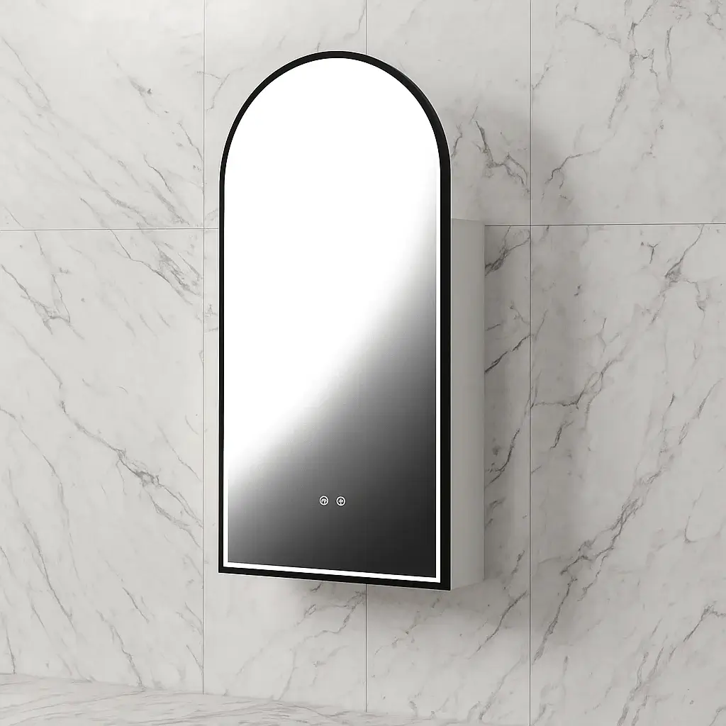 Upgrade your bathroom with the PROTL013 Arch LED Shaving Cabinet – Midnight Edition, a perfect blend of modern design and practical innovation. This exclusive edition builds on the classic Arch LED Shaving Cabinet by adding a striking midnight black frame, bringing a fresh, elegant touch to your space.